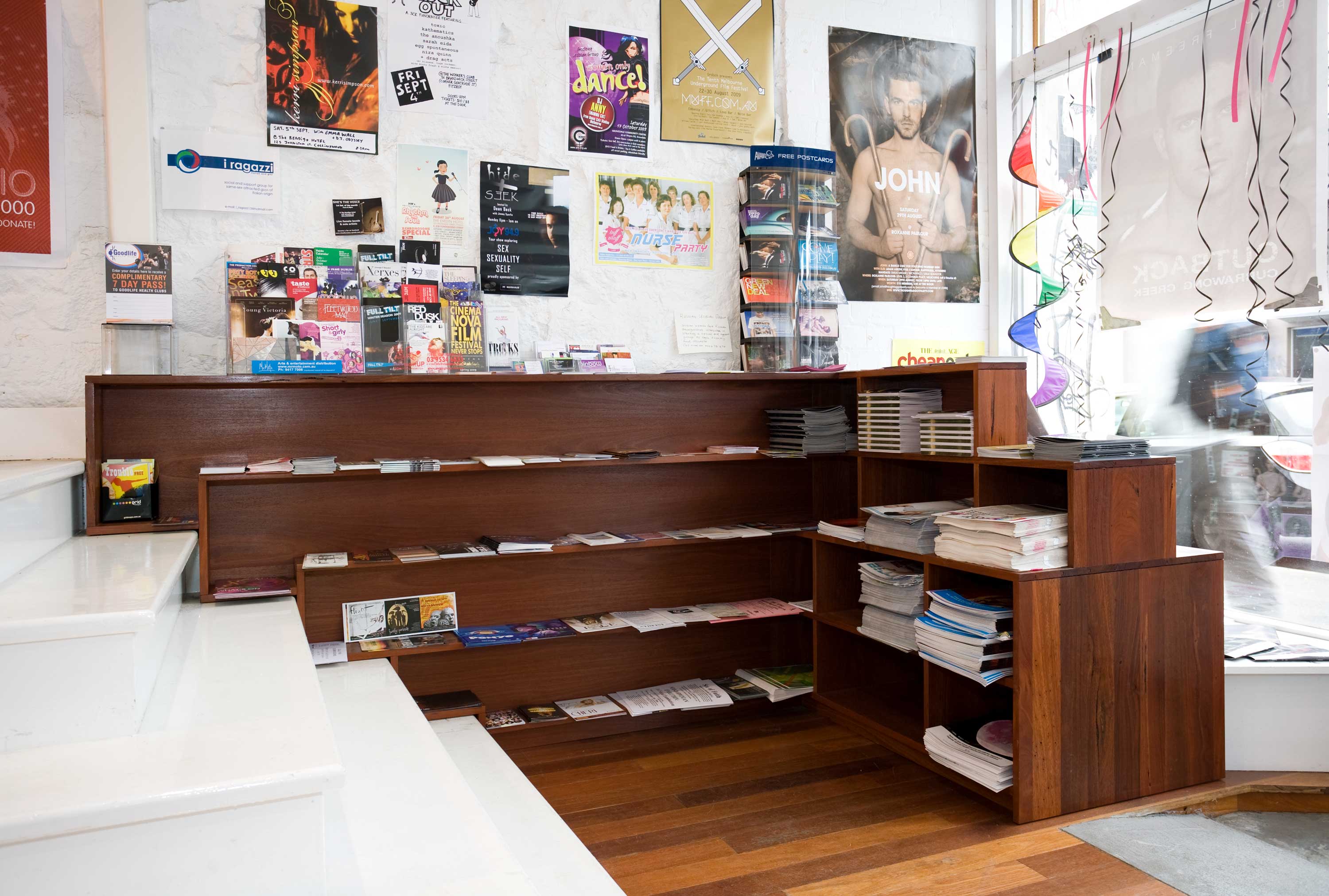 Hares & Hyenas is a queer, alternative bookshop that doubles as a café and performance venue. A sense of subtle theatricality and sophistication is celebrated through details such as the 1920s embossed Thonet chairs and leather theatre seats salvaged from Gasworks Arts Park.